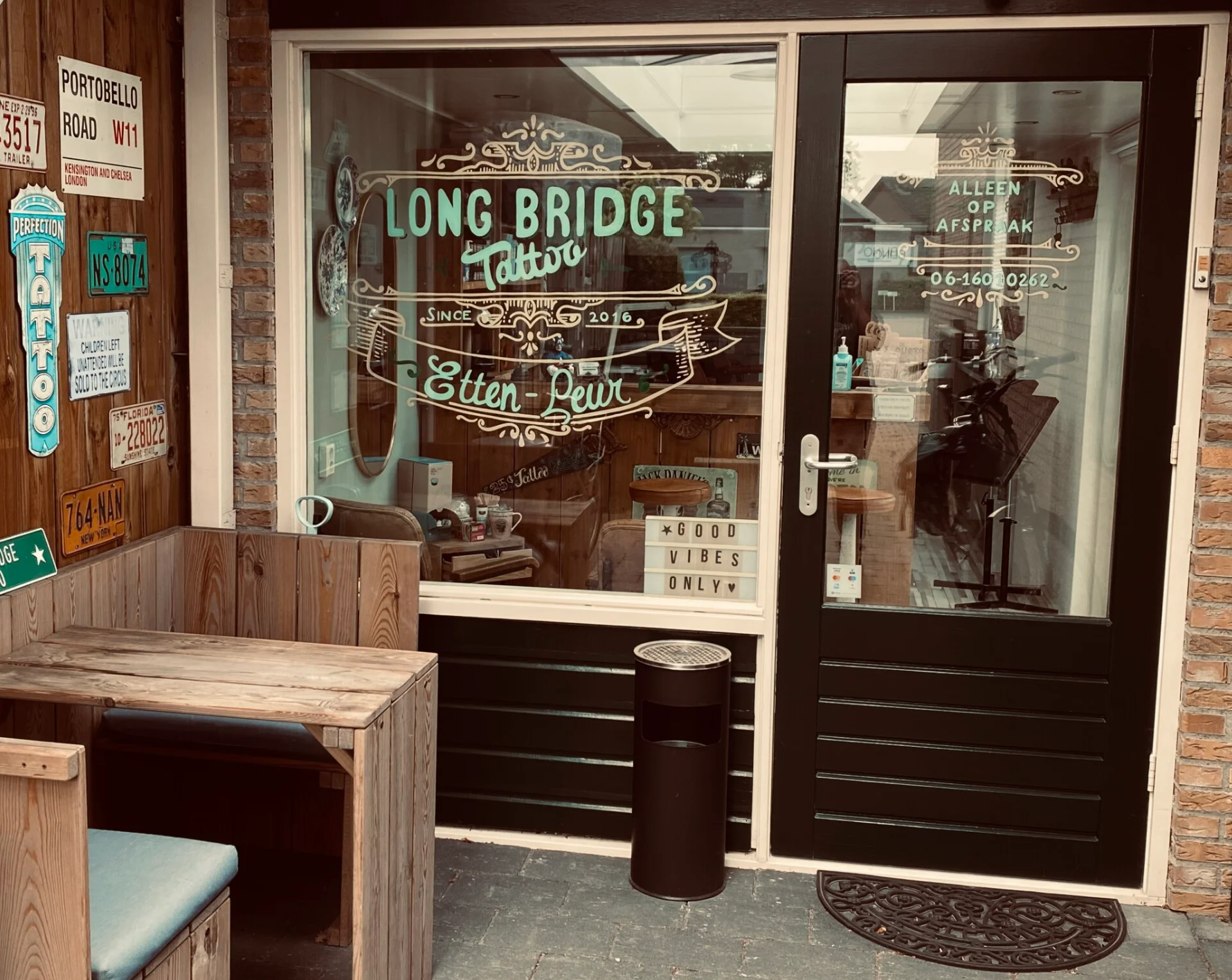 In Etten-Leur vlak bij het winkelcentrum bevind zich Long Bridge Tattoo; de tattooshop van Bianca Jansen. Long Bridge Tattoo is een kleinschalige, gezellige tattooshop. Vanaf maart 2026 zal ik hier werkzaam zijn als piercer.